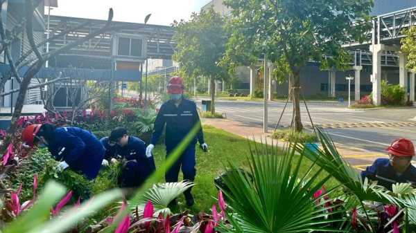 欽州產(chǎn)業(yè)基地200名員工齊聚基地辦公樓旁,大家按部門分成小組,在小組長(zhǎng)的帶領(lǐng)下,開展了植樹及為綠植澆水活動(dòng),倡議全員爭(zhēng)當(dāng)綠色低碳踐行者。