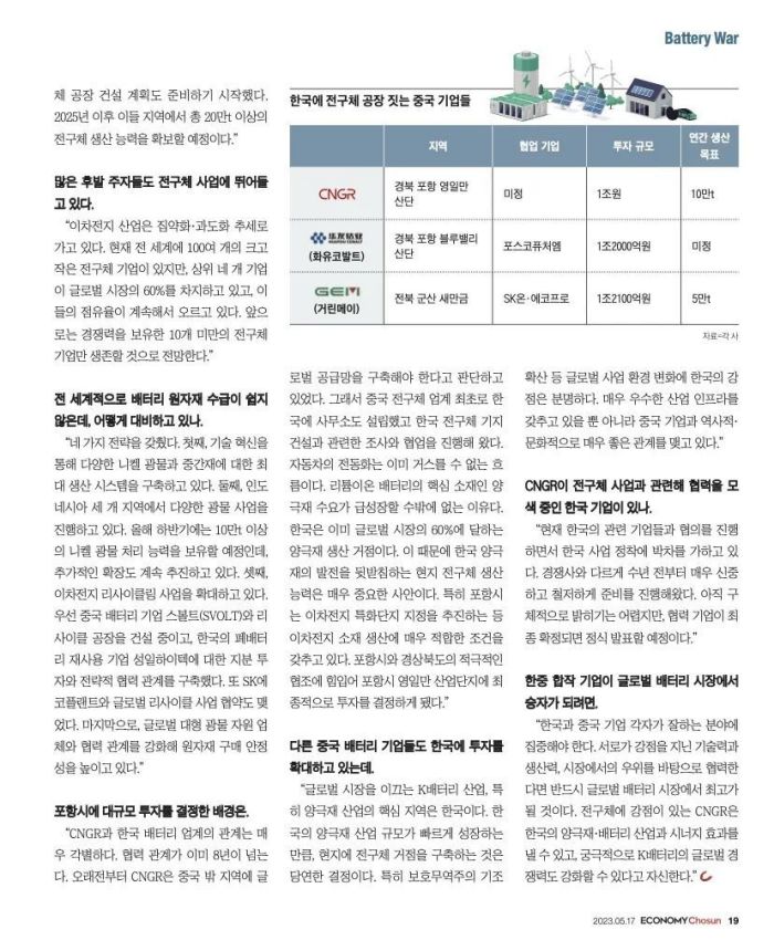 近日,韓國權(quán)威經(jīng)濟(jì)周刊《Economy Chosun(經(jīng)濟(jì)朝鮮)》專訪中偉股份董事長鄧偉明,并以“封面故事”刊發(fā)在第492期以“電池之戰(zhàn)”為主題的周刊中。