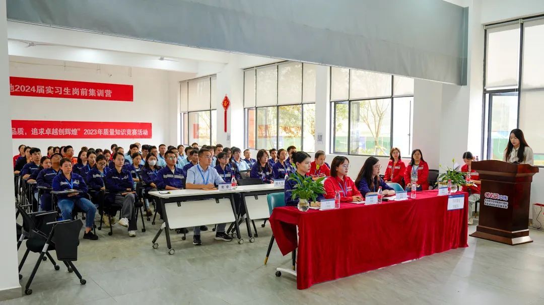 通過前期全員入圍賽及各代表單位的層層選拔,寧鄉(xiāng)產(chǎn)業(yè)基地-壯志凌云隊、銅仁產(chǎn)業(yè)基地-夢幻隊、欽州產(chǎn)業(yè)基地-創(chuàng)新隊、開陽產(chǎn)業(yè)基地-突破隊、研究院-爭先隊、總部中心-超越隊代表各單位決戰(zhàn)總決賽。本次競賽活動共分個人必答、黃金60秒、風(fēng)險題三個環(huán)節(jié)進行。題庫范圍涵蓋了前期學(xué)、練、考過程中的質(zhì)量體系制度和管理標準、質(zhì)量工具等知識內(nèi)容。