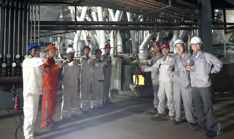2022年8月,項目進入最后的沖刺階段。作為項目建設負責人,劉寅更是駐守到一線,在工地、車間現(xiàn)場,帶領設備安裝管理團隊,專攻調(diào)試期間的現(xiàn)場突發(fā)問題,實行“24小時現(xiàn)場排班制”,一刻不漏盯現(xiàn)場、盯設備、盯產(chǎn)線。8月份的印尼正值高溫高熱季節(jié),劉寅的身先士卒也影響了所有項目建設、調(diào)試人員,最終大家團結(jié)一心,奮力沖刺,最終打贏了這場“硬仗”?;貞涍@段經(jīng)歷,劉寅至今印象深刻,他幽默地說道:“大家24小時都在現(xiàn)場,每天一身臭汗,全部變成了‘油膩男’,但每個人眼神中的堅毅讓我相信項目一定能成。那是一段難忘的經(jīng)歷,很榮幸與他們在同一條’戰(zhàn)壕‘里作戰(zhàn),一起為勝利而戰(zhàn)!”