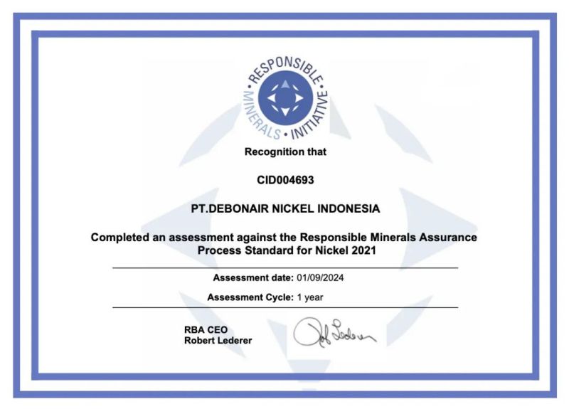 近日,位于中偉印尼緯達(dá)貝產(chǎn)業(yè)基地的印尼德邦鎳業(yè)有限公司成功獲得責(zé)任礦產(chǎn)倡議(Responsibie Minerals Initiative,簡稱“RMI”)頒發(fā)的礦產(chǎn)供應(yīng)鏈盡責(zé)管理審核通過證書,成為印尼首家申請并通過RMI礦產(chǎn)供應(yīng)鏈盡責(zé)管理審核的鎳粗煉企業(yè)。