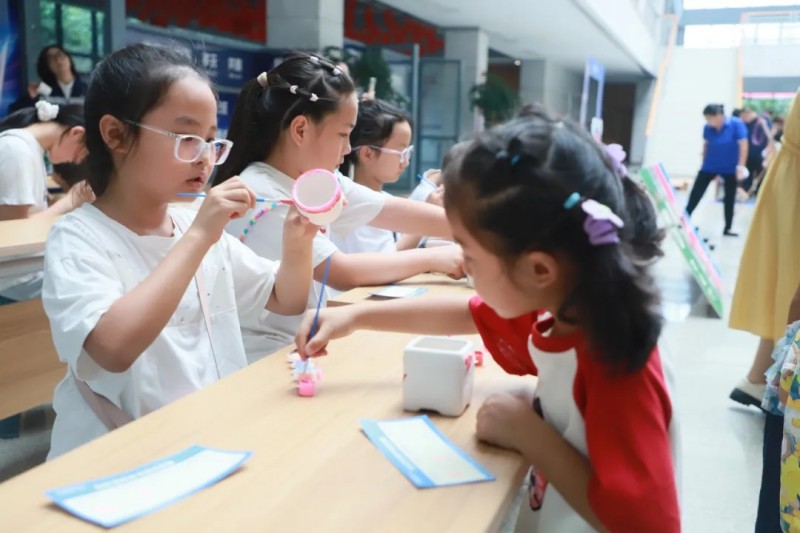 在寧鄉(xiāng)產業(yè)基地的“石膏娃娃”彩繪區(qū),孩子們用五彩顏料勾勒出心中的綠色能源夢;“手腳并用”挑戰(zhàn)賽鍛煉協調能力,“公雞下蛋”比拼趣味十足,加油歡呼聲響徹現場。