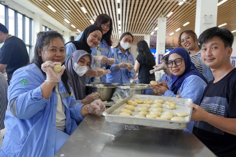 為了給大家創(chuàng)造美好的節(jié)日記憶,莫羅瓦利產(chǎn)業(yè)基地在中秋節(jié)當(dāng)天開展了“月餅制作活動(dòng)”?;顒?dòng)現(xiàn)場(chǎng),中、印尼籍員工齊聚一堂,在專業(yè)廚師的指導(dǎo)下共同制作專屬創(chuàng)意月餅。大家在交流與協(xié)作中體驗(yàn)手作的樂(lè)趣,一塊塊月餅不僅承載著節(jié)日的甜蜜,更成為連接不同文化背景員工之間的情感紐帶,進(jìn)一步加深了團(tuán)隊(duì)情誼與文化理解。
