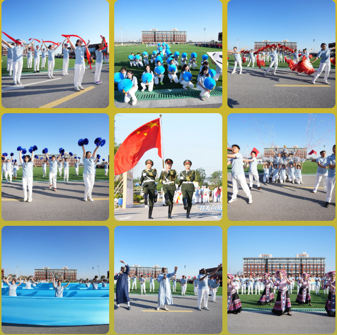 晨曦初照,開幕式現(xiàn)場人聲鼎沸,熱鬧非凡,8支參賽隊伍邁著整齊的步伐,跟隨國旗、司旗、運動會會旗入場,帶來各具特色的精彩表演。彩帶飄揚、花團簇簇,啦啦操與大合唱、彩扇舞與錦緞陣,形式各樣的開幕式表演將民族的、也將世界的文化凝結(jié)匯聚,展現(xiàn)出全球中偉人拼搏向上、自立自強的精神面貌,詮釋了“責任創(chuàng)新多元共贏”的精神內(nèi)核。
