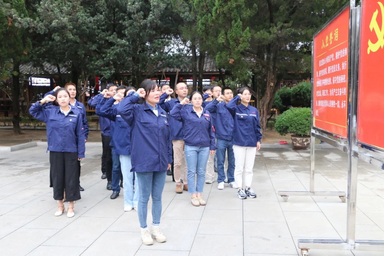 參觀結束后,中偉新材料有限公司黨支部書記袁旬帶領全體黨員,在紀念館前重溫入黨誓詞,警醒全體黨員要不忘初心,牢記黨員身份,服從組織決定,要沿著先輩的足跡,傳承黨的智慧,在新時代中國特色社會主義思想指引下,煥發(fā)新氣象,擔當新作為。