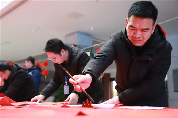 次日,來自寧鄉(xiāng)市書法家協(xié)會的書法大家們受邀來到中部產(chǎn)業(yè)基地,參加“翰墨中偉”寫春聯(lián)送祝?;顒??;顒蝇F(xiàn)場,書法家們用紅紙黑字、筆墨紙硯傳遞著新春的溫暖與祝福。